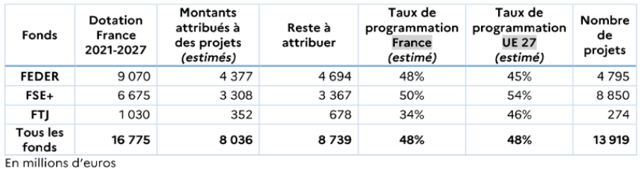 Depuis 2021, la France a considérablement avancé dans la mobilisation de ses crédits européens :