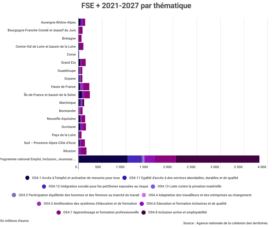 Le FSE+ (Fonds social européen Plus), pour l’emploi, l’inclusion et la formation ;