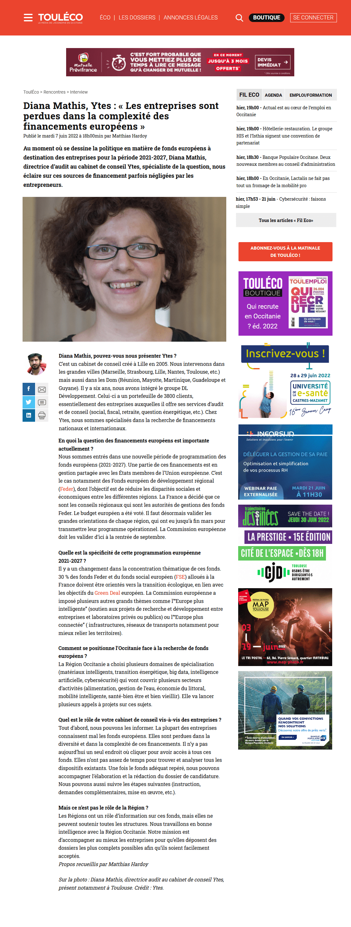 Retrouvez notre directrice audit Diana Mathis dans une interview du magazine économique de Toulouse TOULECO parue le mois dernier et réalisée par M. Hardoy à propos des subventions européennes à destination des entreprises occitanes :